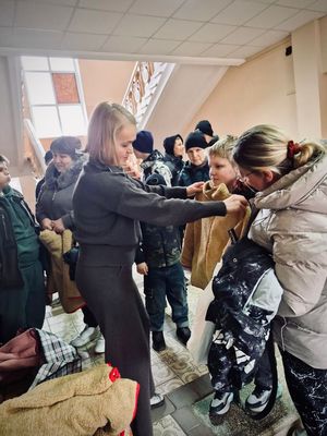 Fleecejacken an Kinder in der Ostukraine verteilt